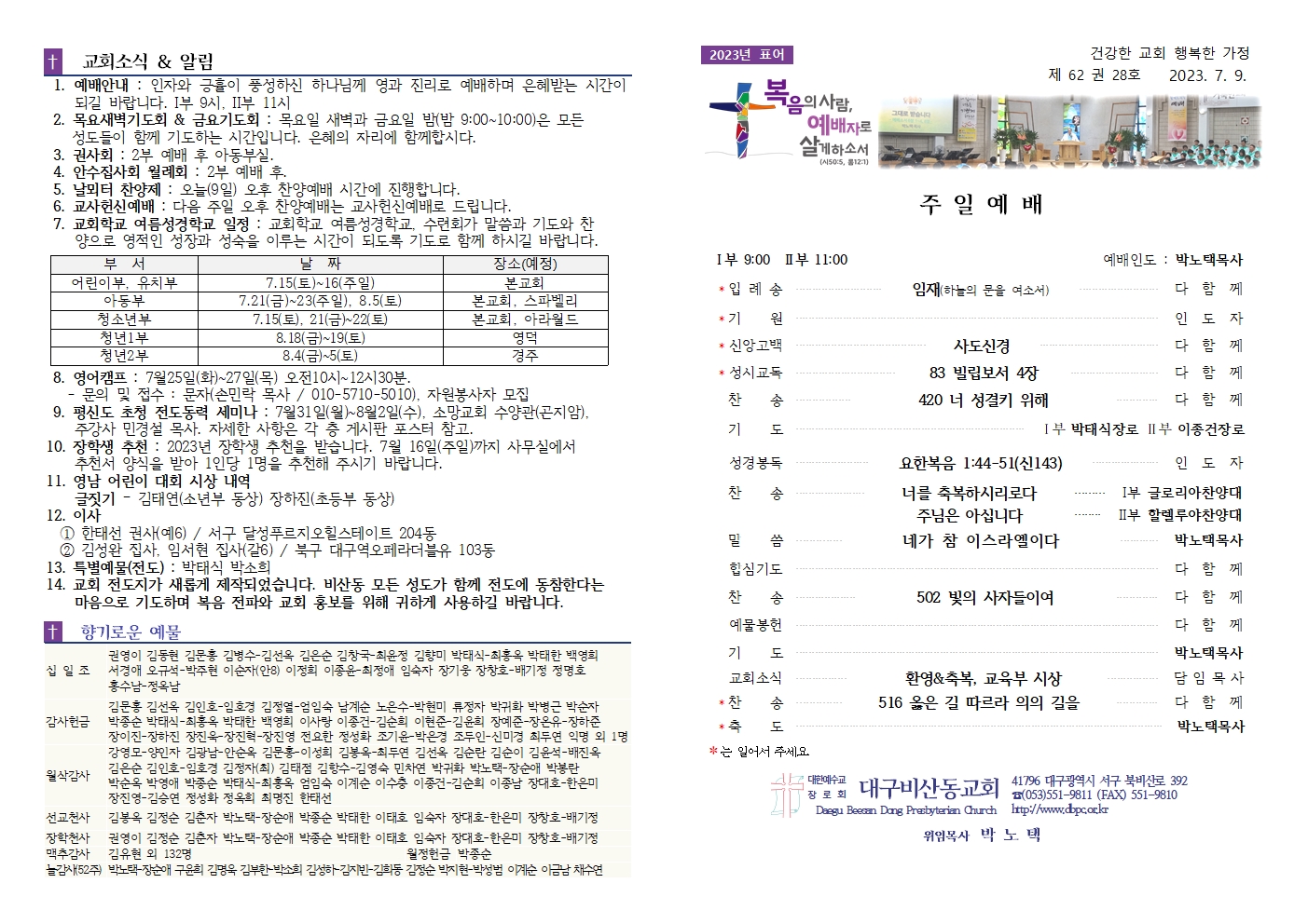 2023년 9월 3일 주보(총회주일)