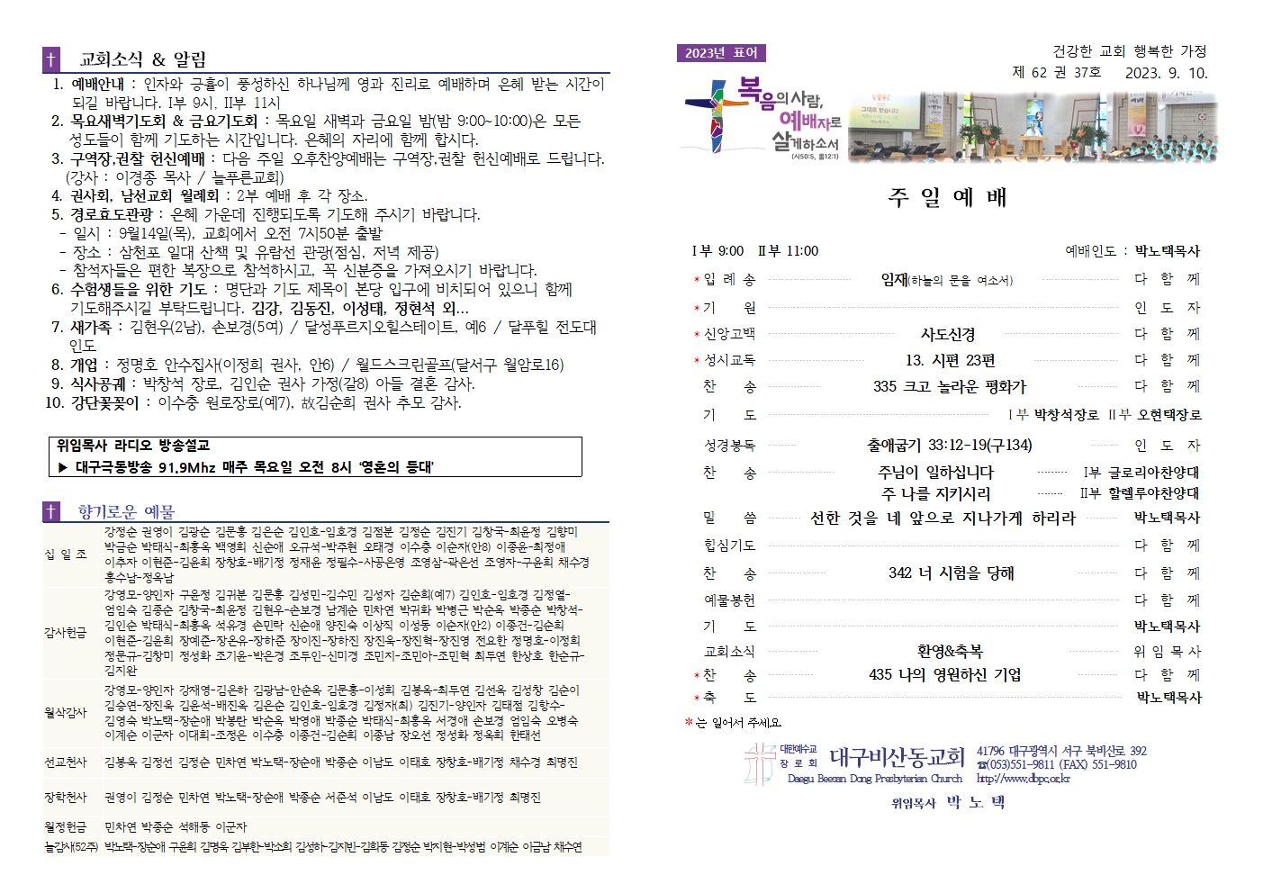 2023년 5월 7일 주보(어린이 & 어버이 주일)