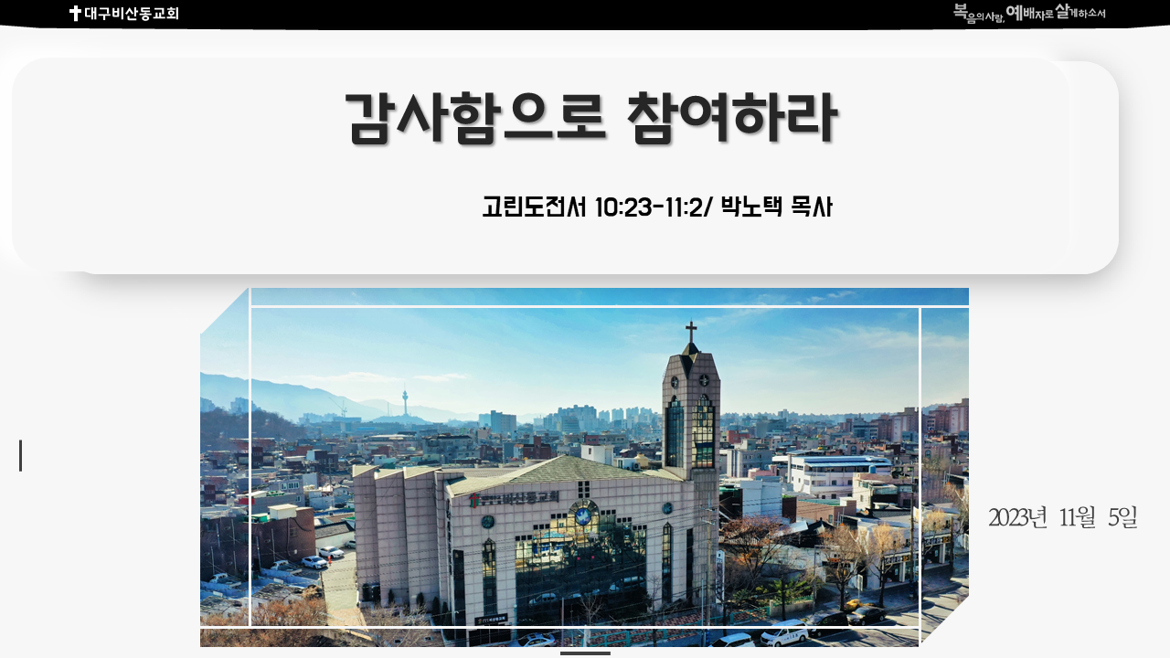 2023년 10월 15일 주일예배 말씀영상(추수감사주일)