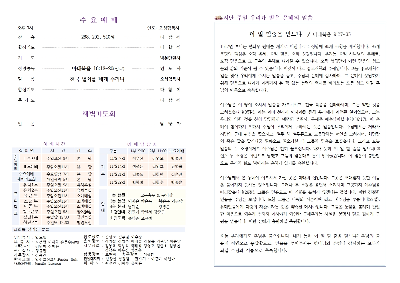 2021년 10월 31일 주보 (종교개혁주일)
