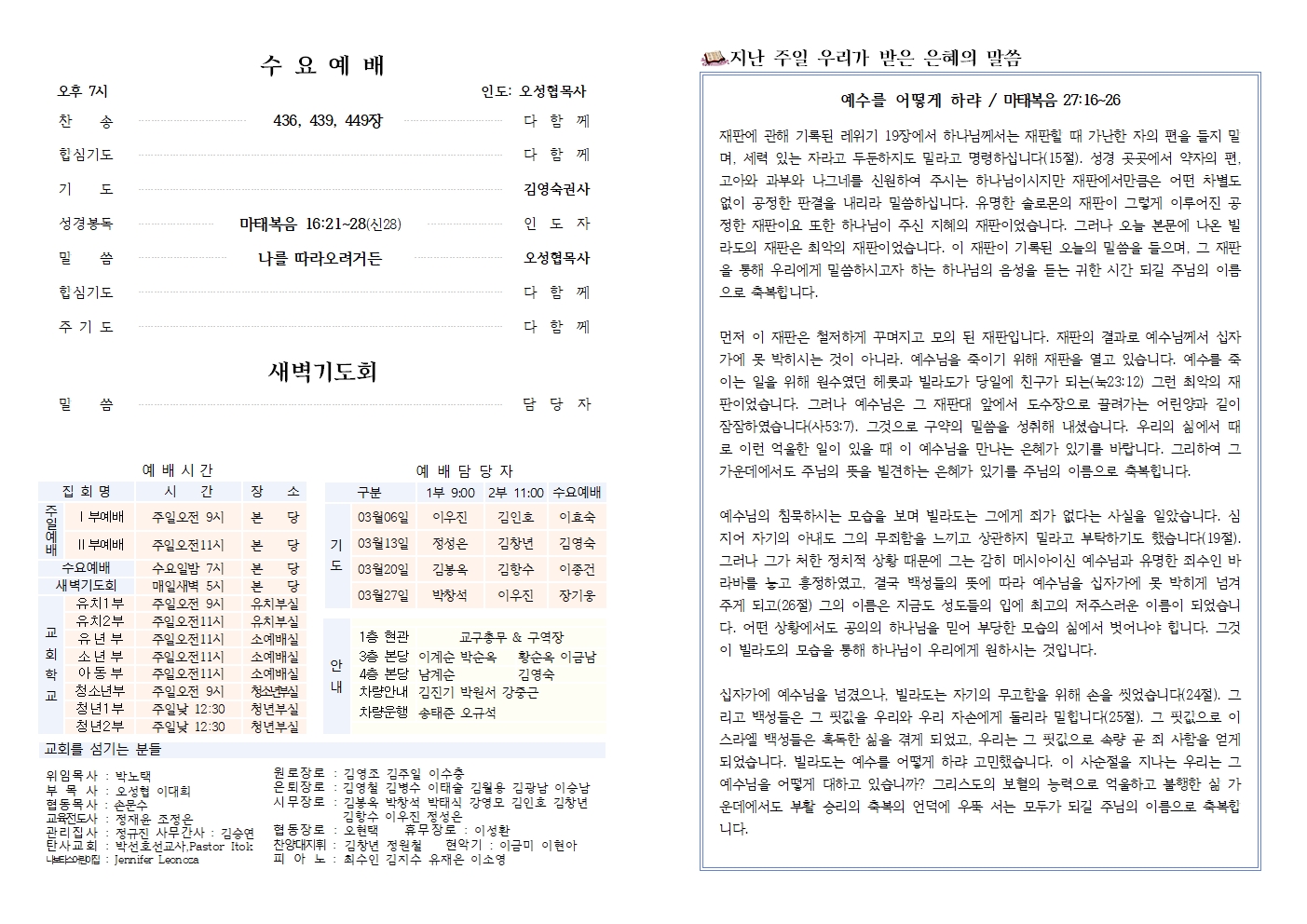 2022년 03월 20일 주보 (사순절 세 번째 주일)