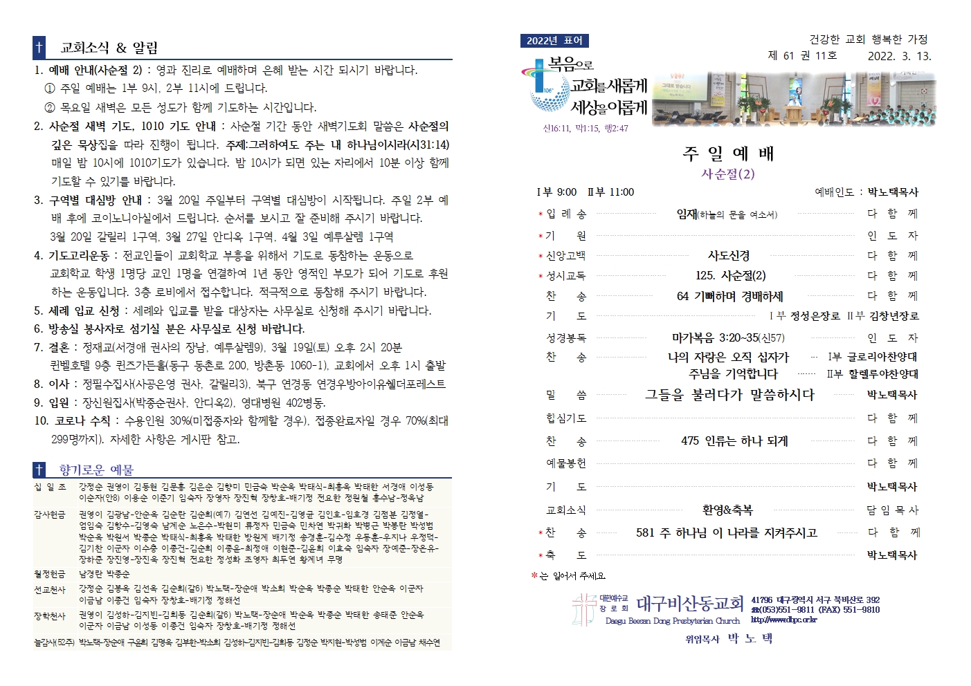 2022년 03월 13일 주보 (사순절 두 번째 주일)