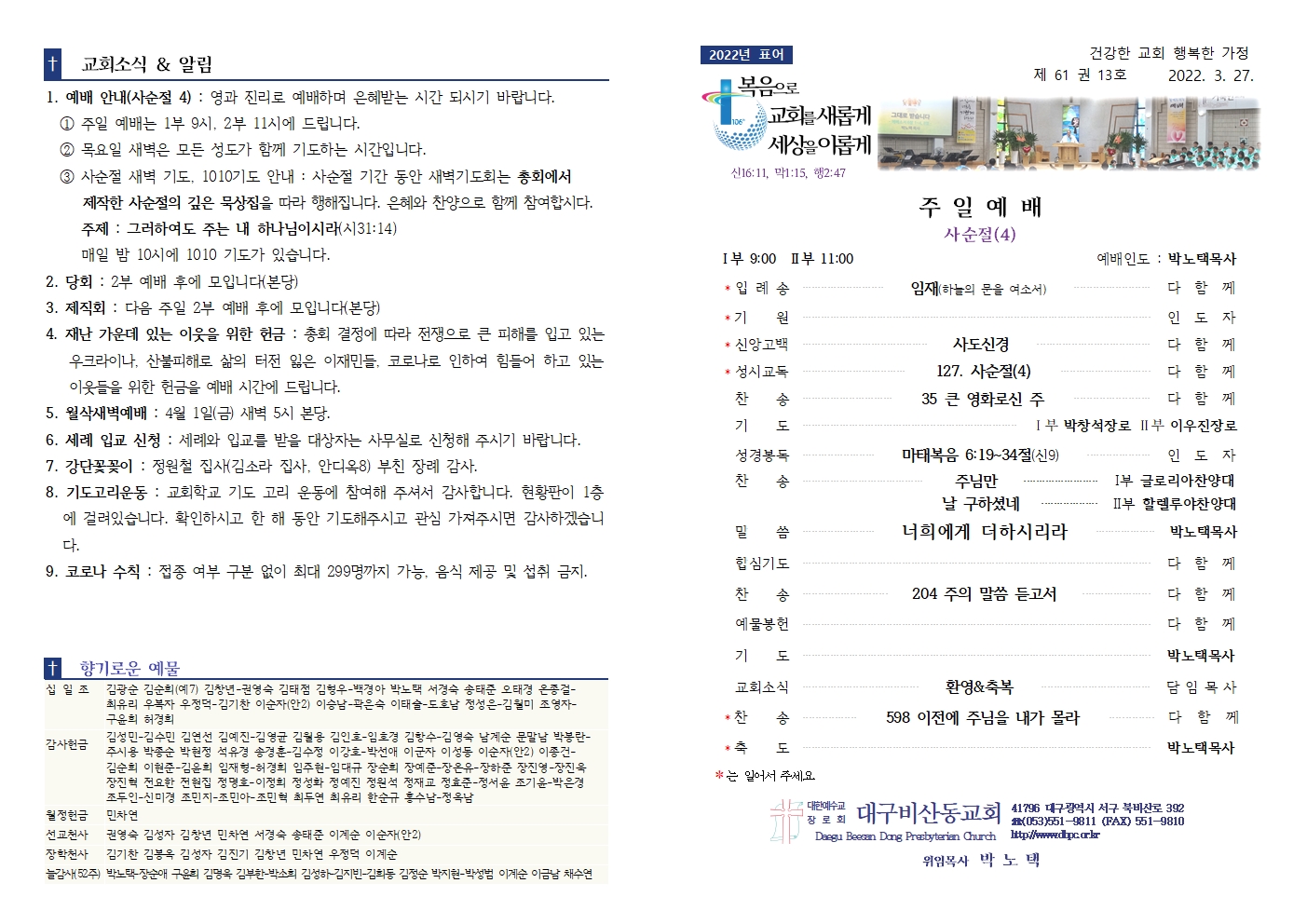 2022년 03월 27일 주보 (사순절 네 번째 주일)