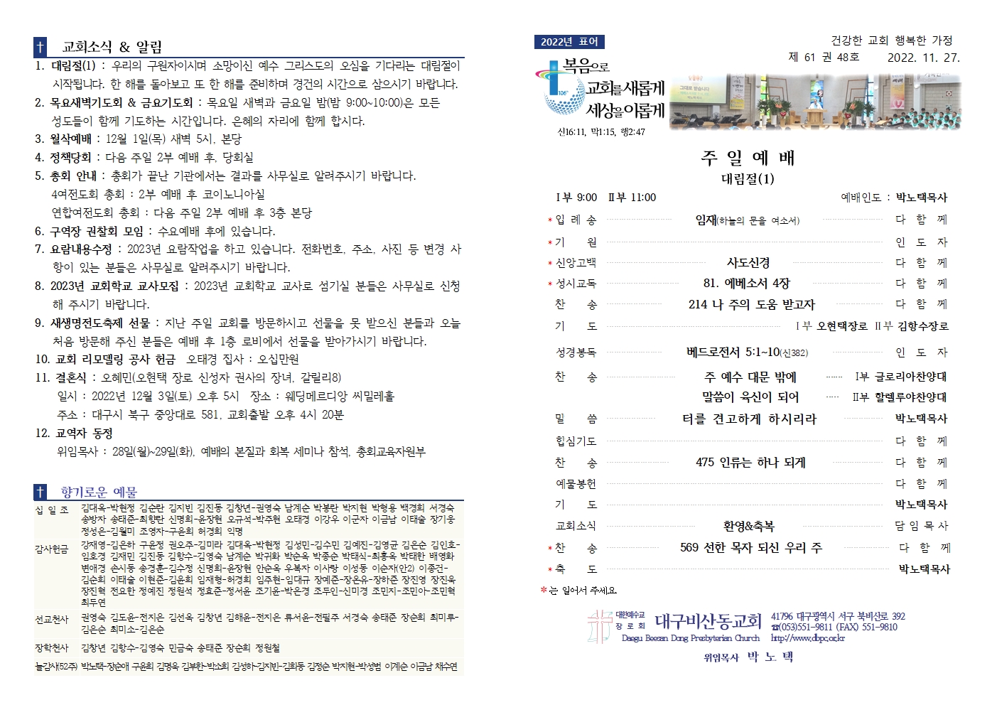 2022년 11월 27일 주보 (대림절 첫번째 주일)