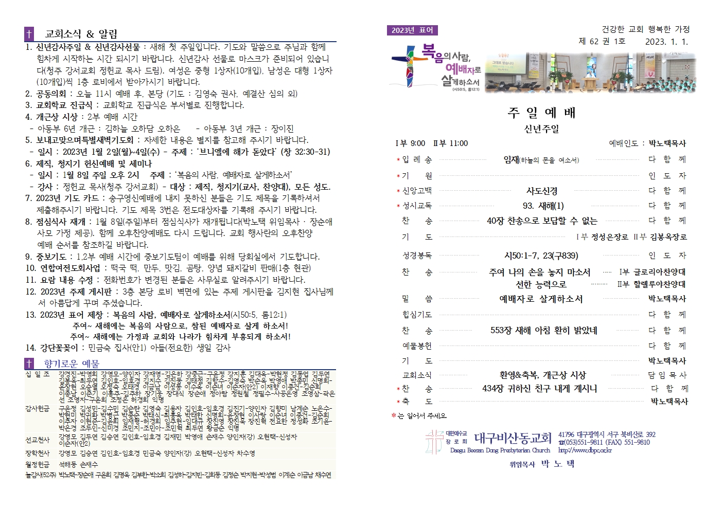 2023년 3월 19일 주보(사순절4&남선교회주일)