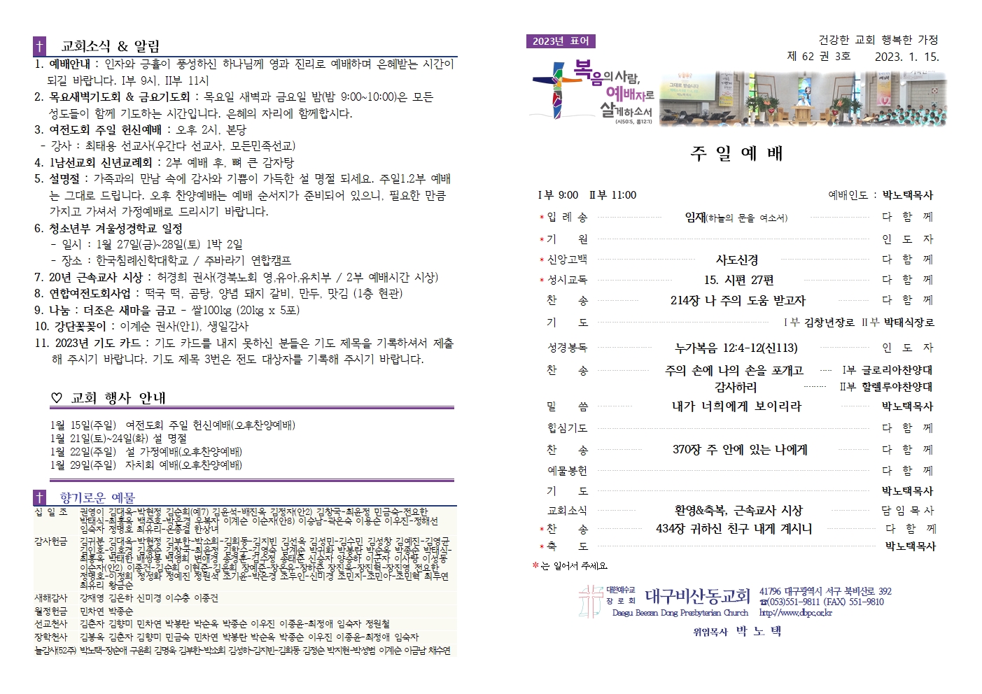 2023년 3월 19일 주보(사순절4&남선교회주일)