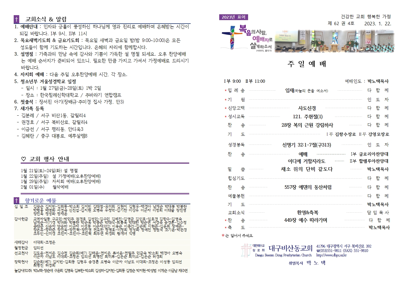 2023년 3월 19일 주보(사순절4&남선교회주일)