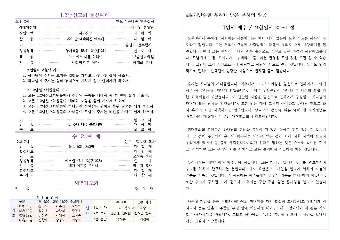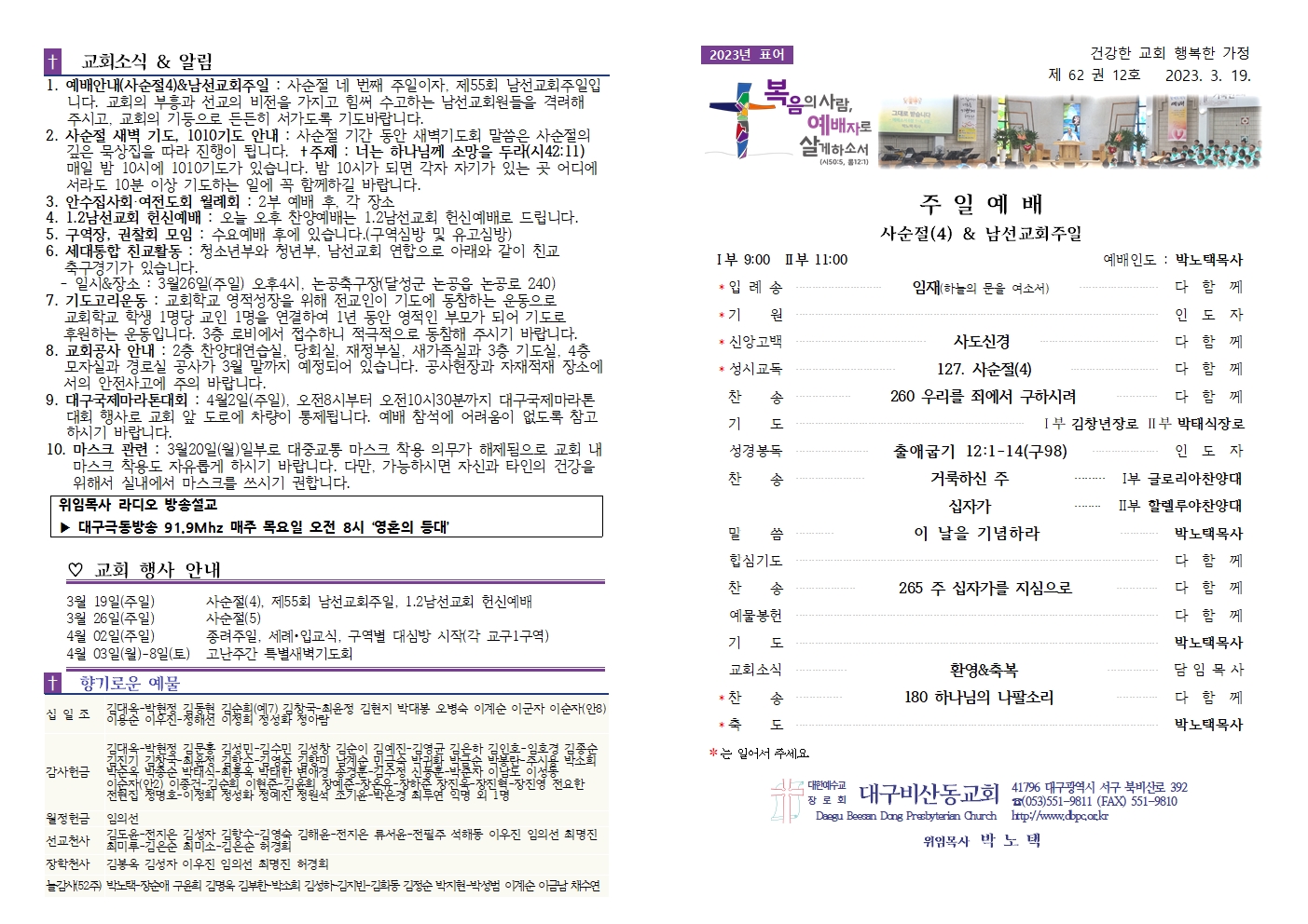 2023년 3월 19일 주보(사순절4&남선교회주일)