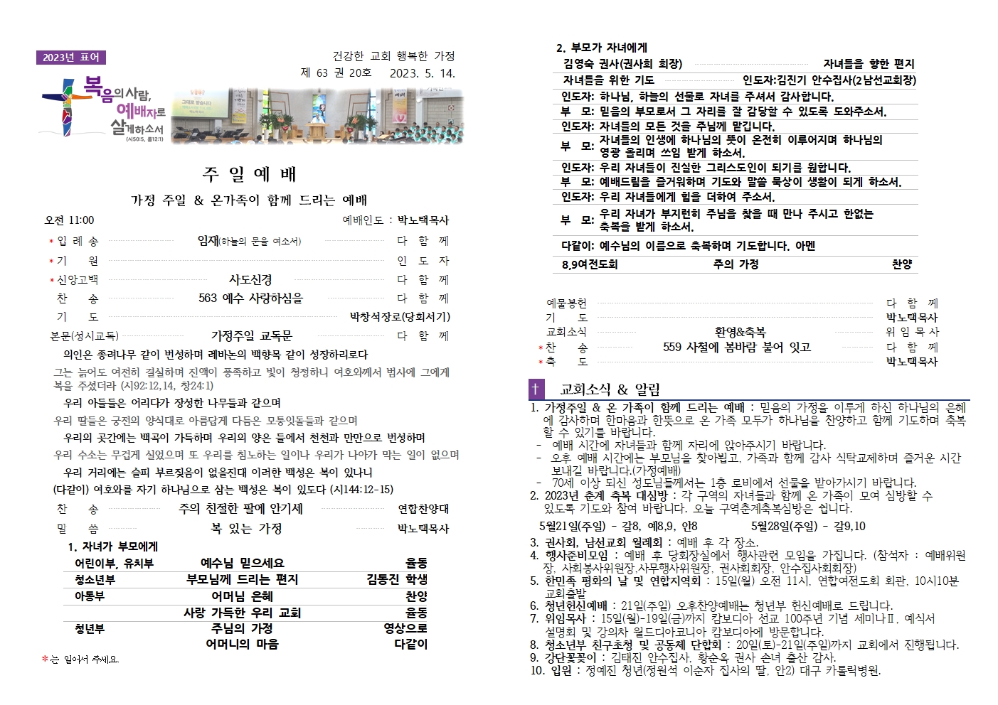 2023년 5월 14일 주보(가정 주일 & 온 가족이 함께 드리는 예배)