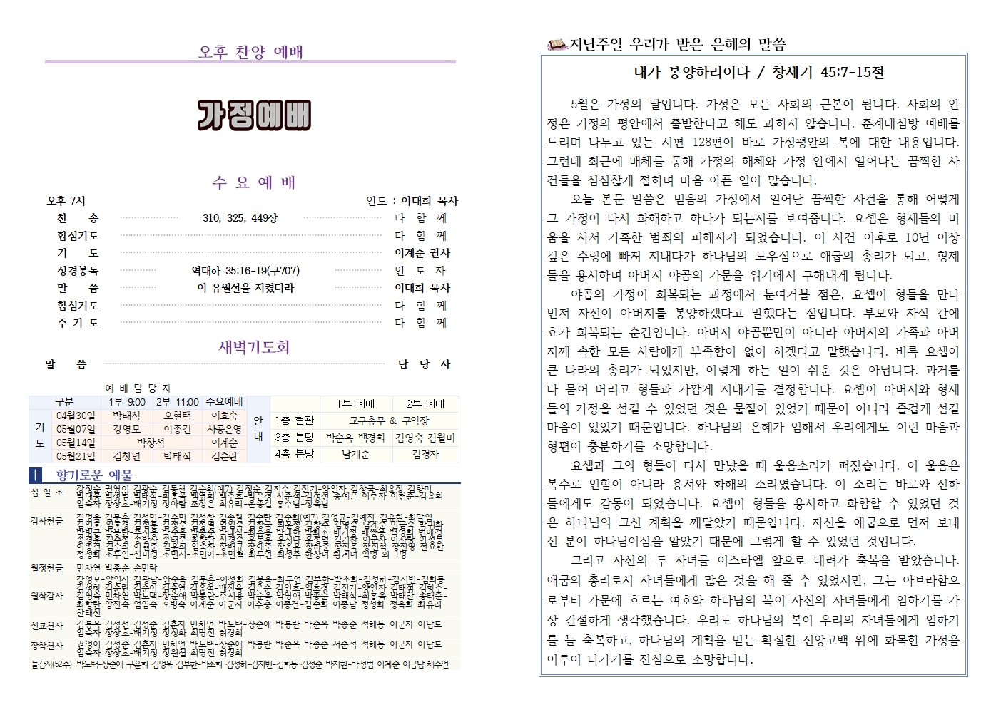 2023년 5월 7일 주보(어린이 & 어버이 주일)