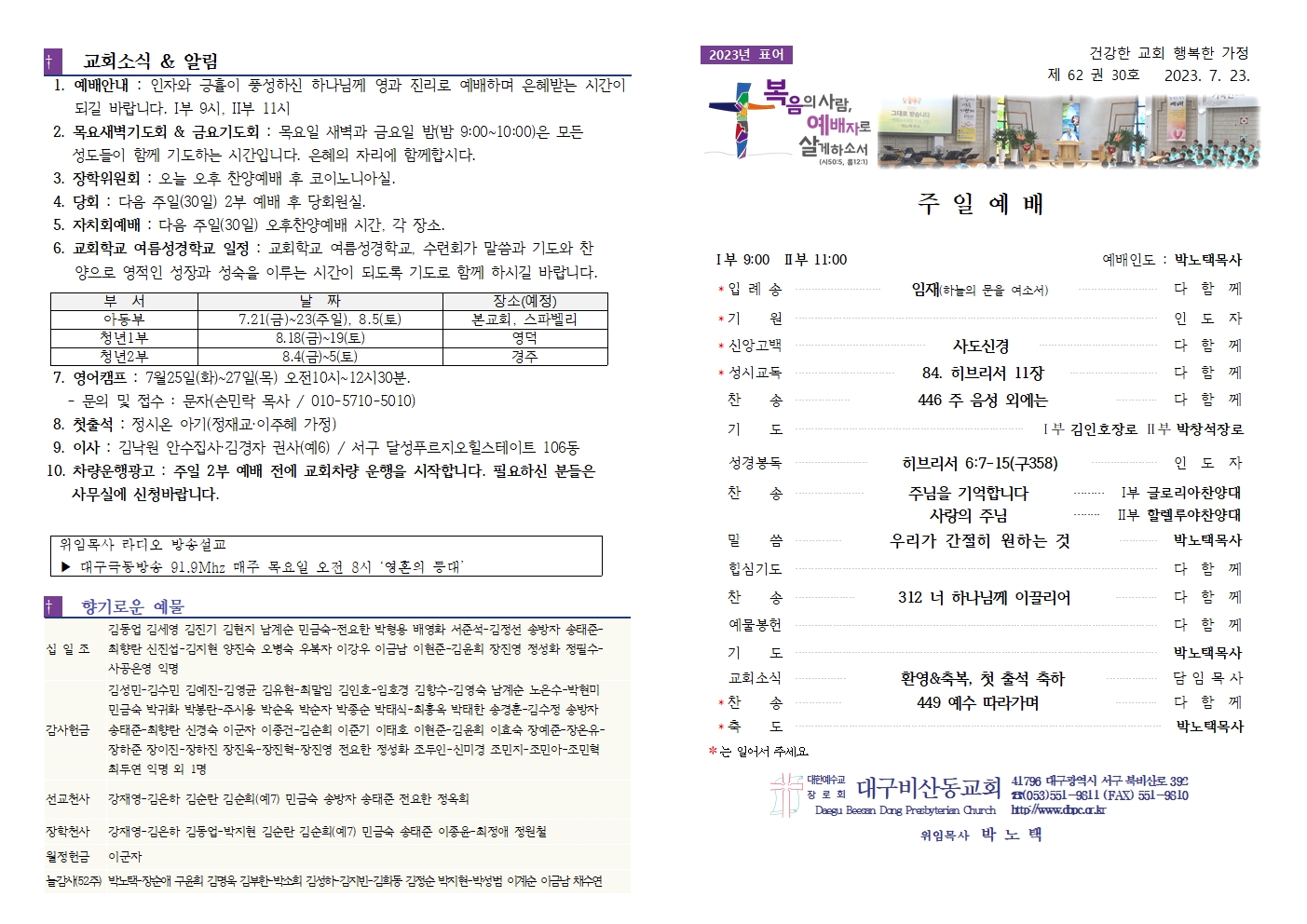 2023년 5월 7일 주보(어린이 & 어버이 주일)