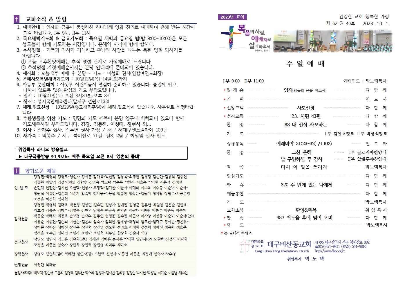2023년 9월 3일 주보(총회주일)
