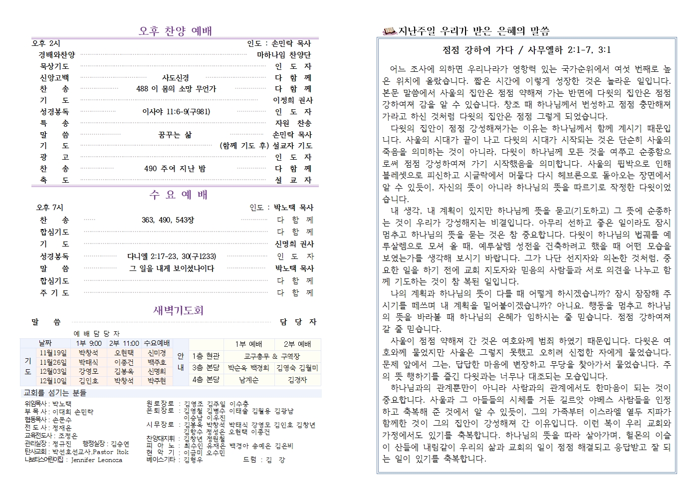 2024년 2월 25일 주보(3.1절 기념주일, 사순절 두 번째 주일)