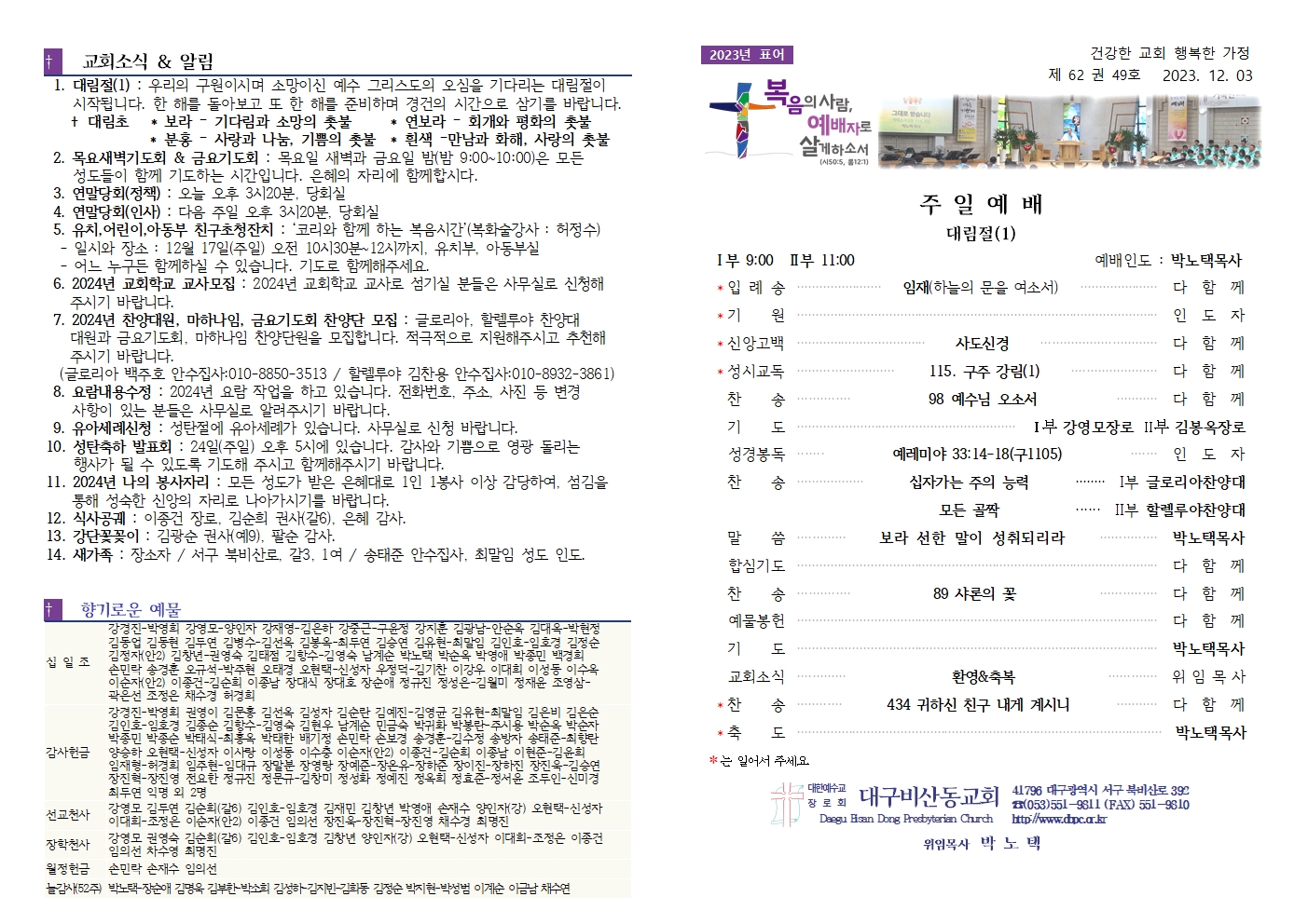 2023년 12월 31일 주보(송년주일)