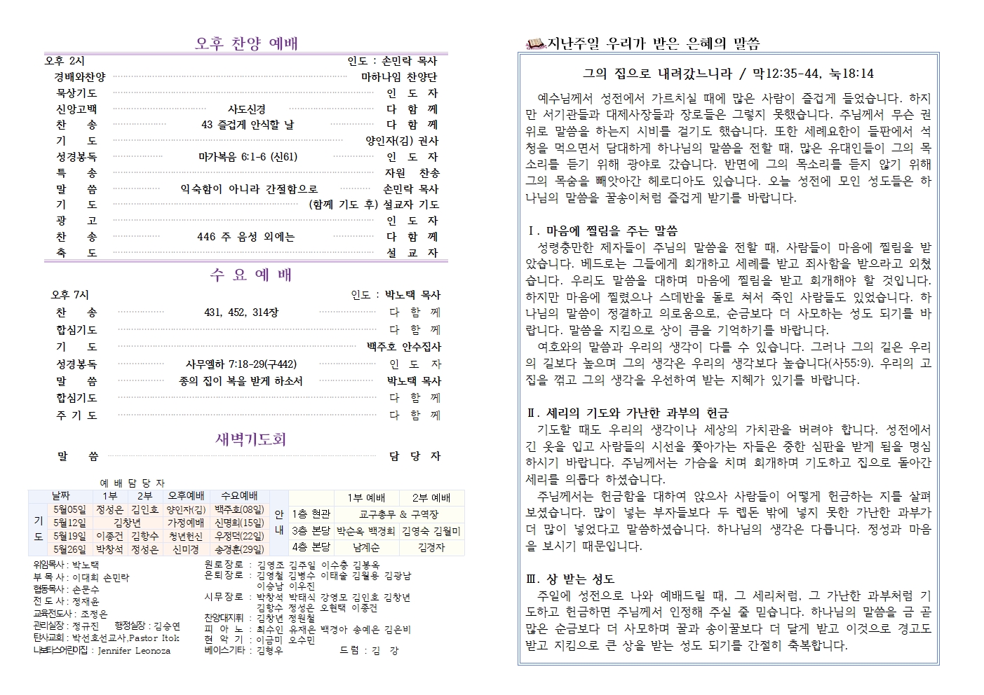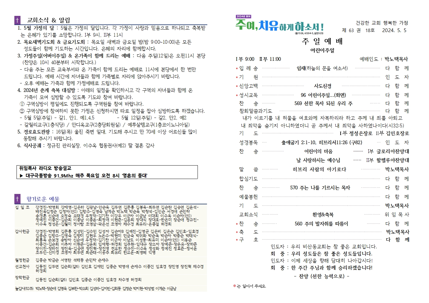 2024년 5월 19일 주보(성령강림주일 청년주일)