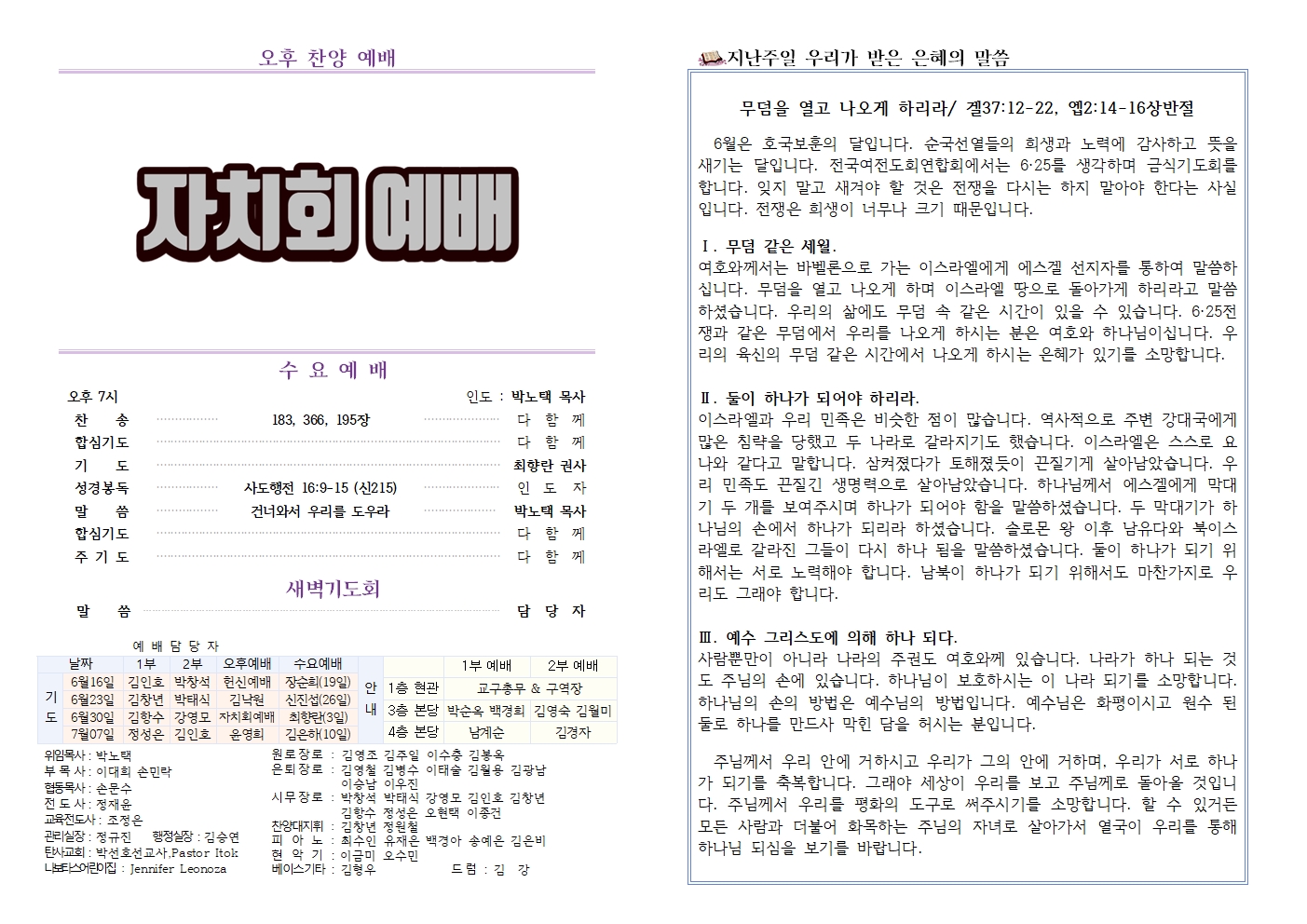 2024년 5월 19일 주보(성령강림주일 청년주일)