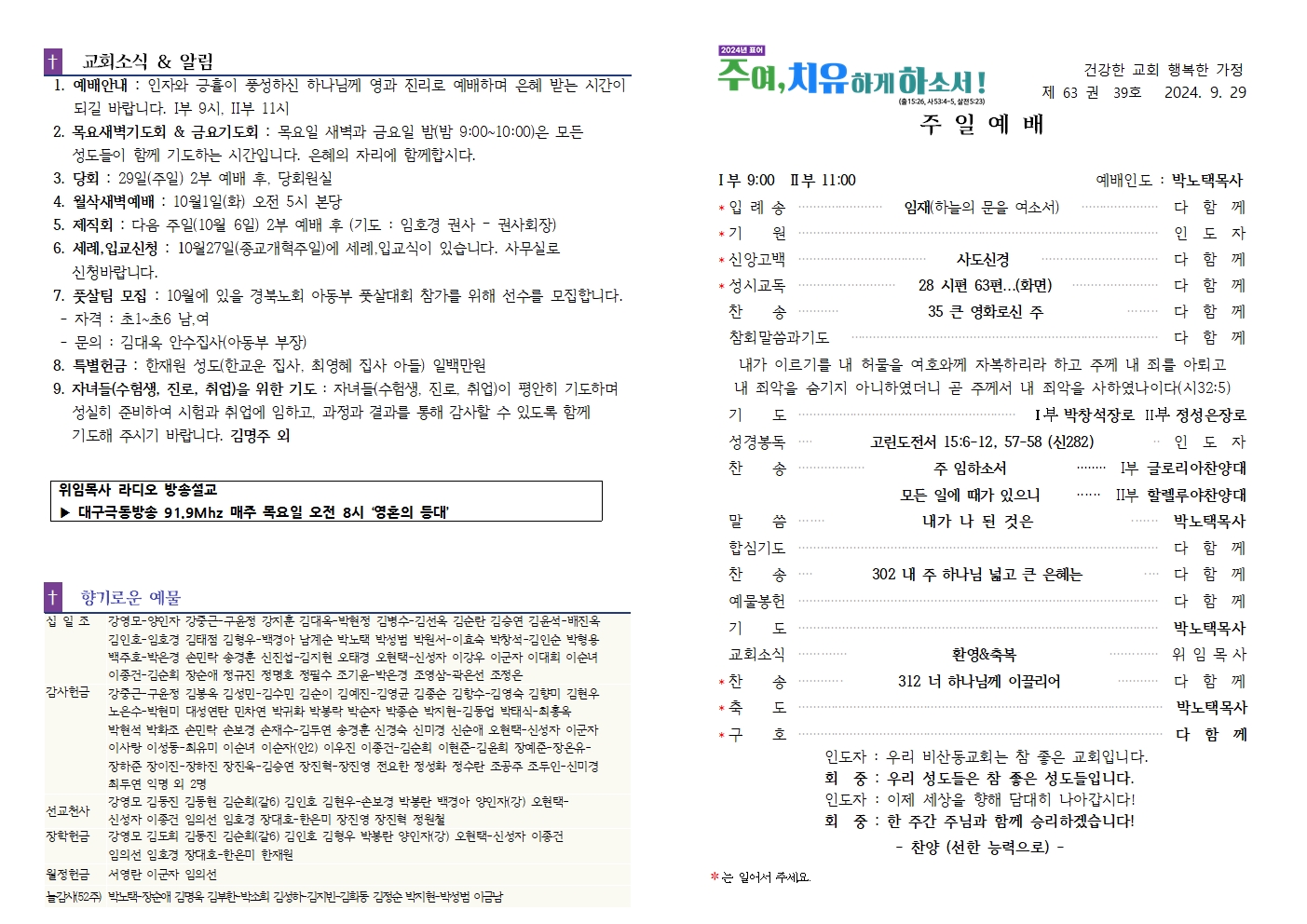 2024년 10월 20일 주보(추수감사주일)