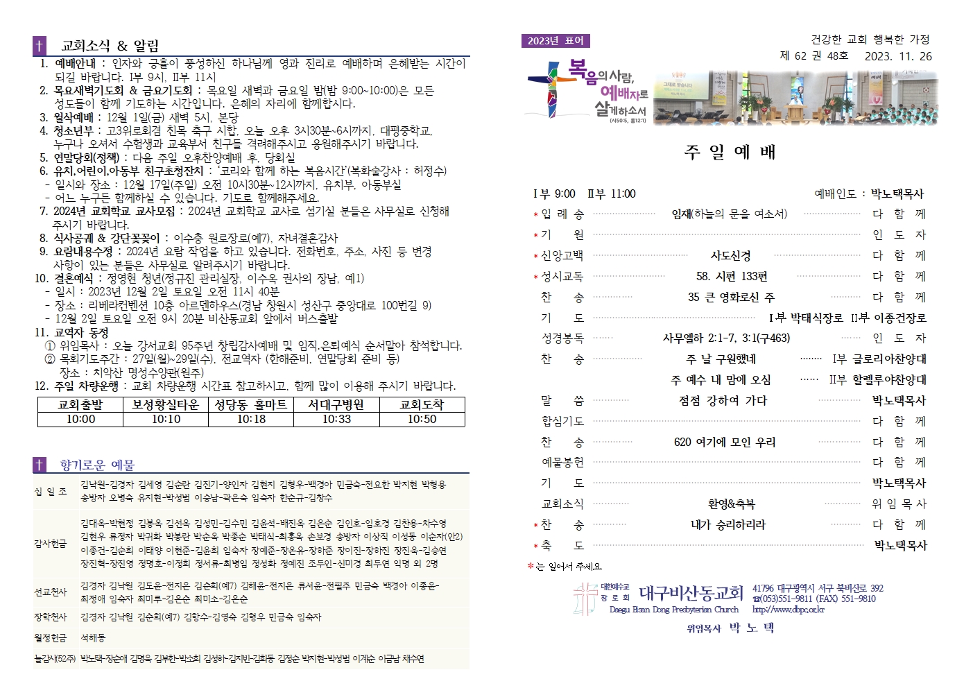 2024년 2월 25일 주보(3.1절 기념주일, 사순절 두 번째 주일)