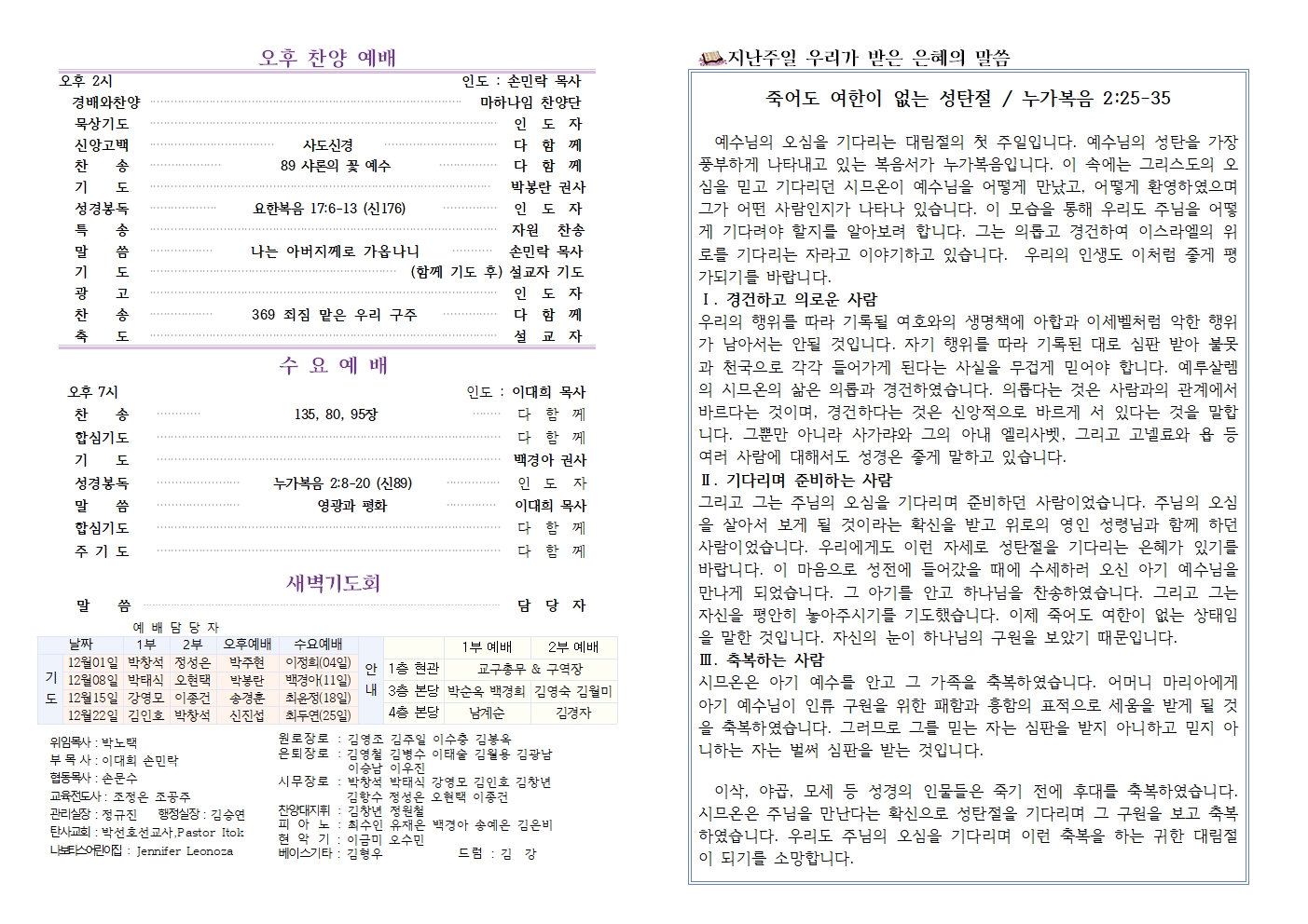 2024년 12월 22일 주보(대림절4 & 성탄주일)