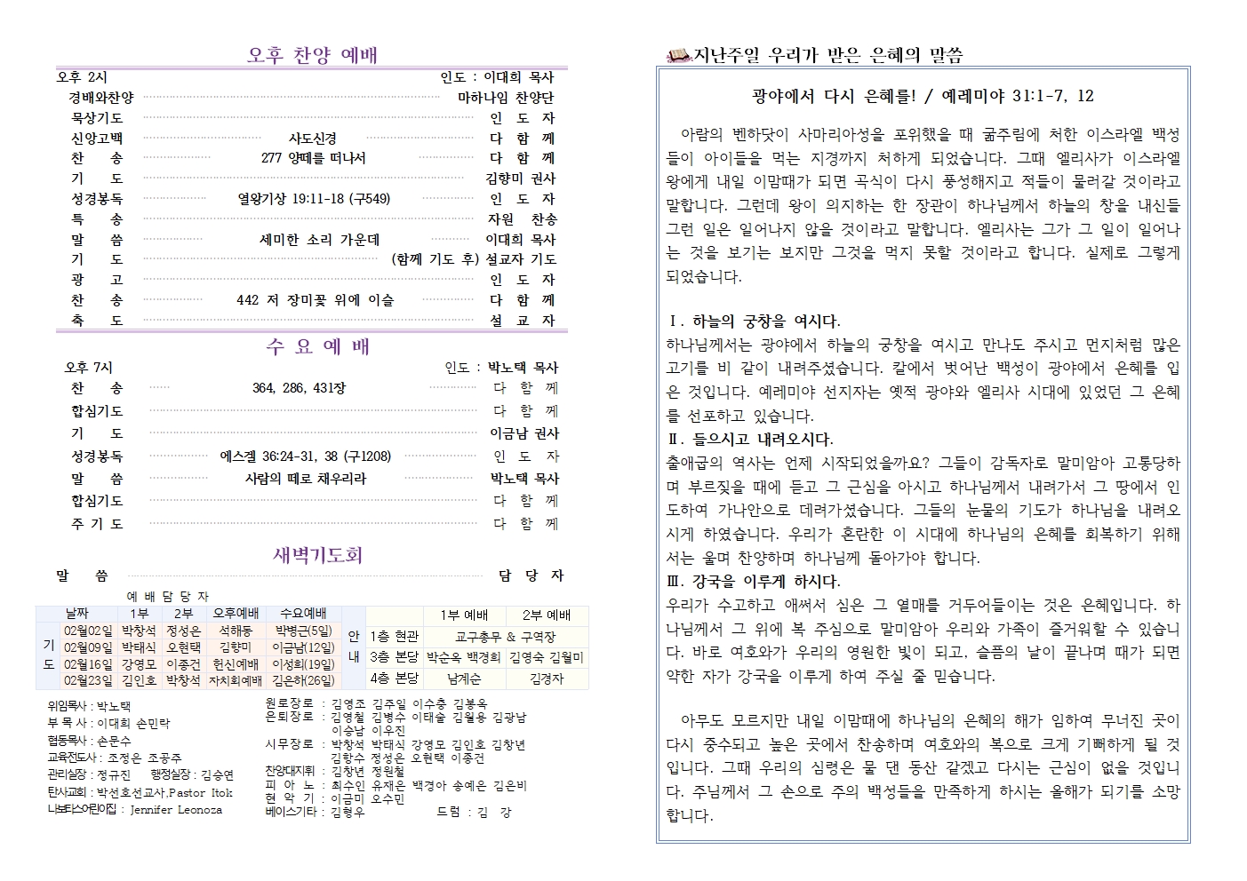 2024년 12월 29일 주보(송년주일)