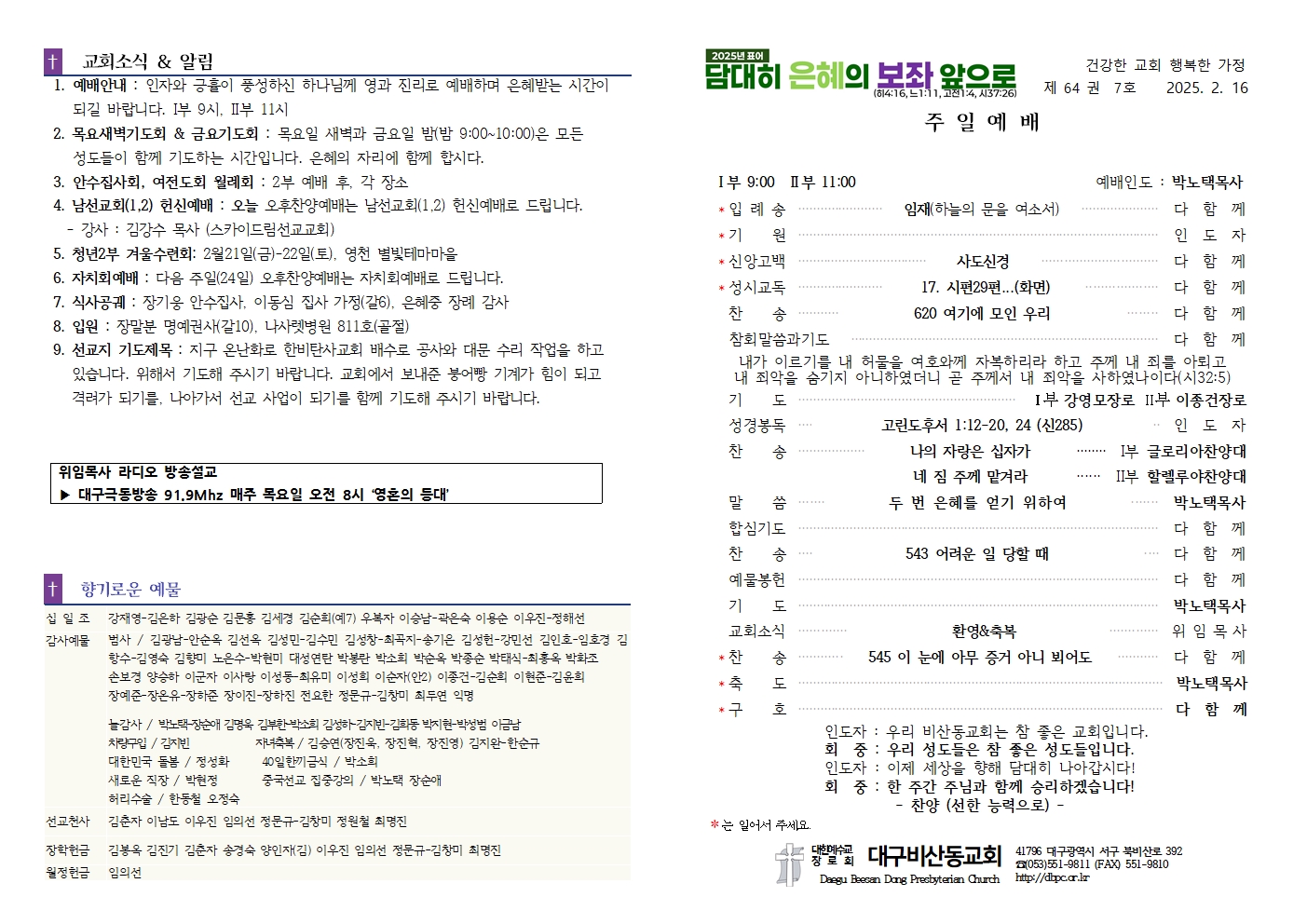 2025년 3월 16일 주보(사순절 두 번째 주일)