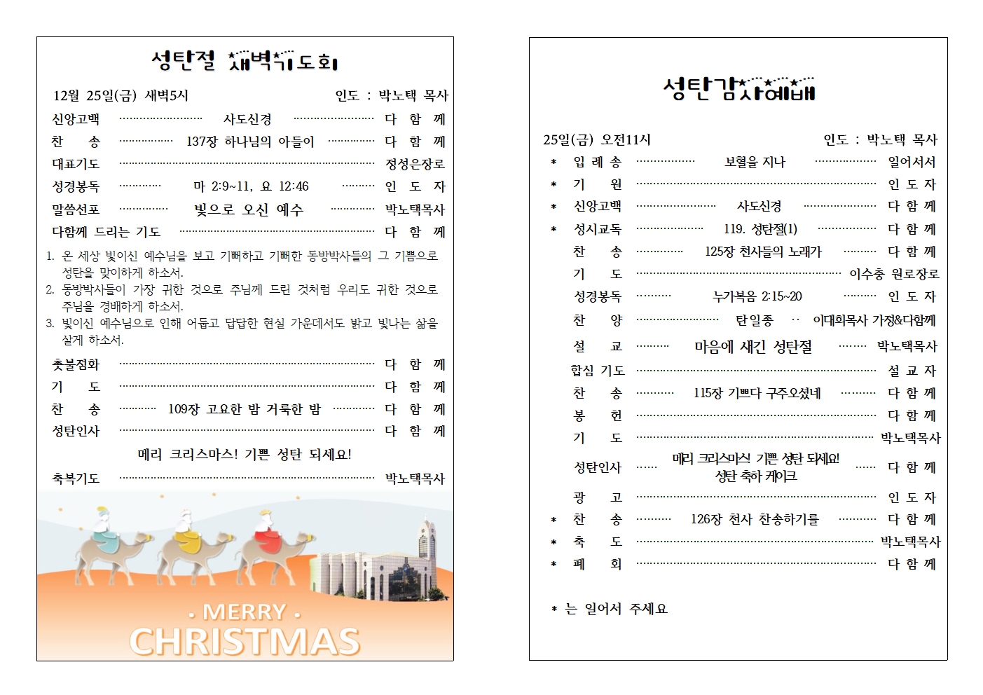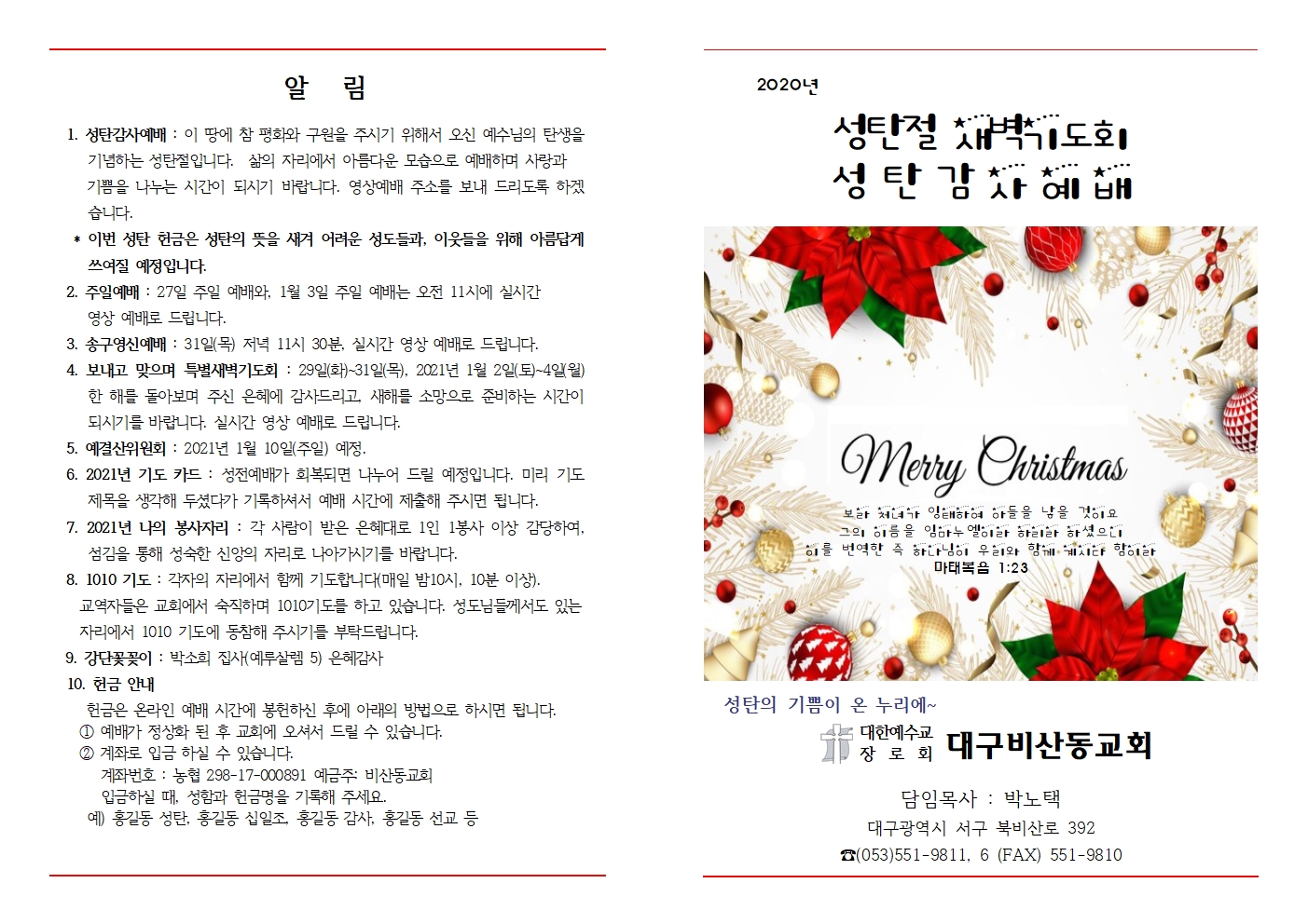 2020년 12월 25일 성탄새벽기도회와 성탄감사예배 주보