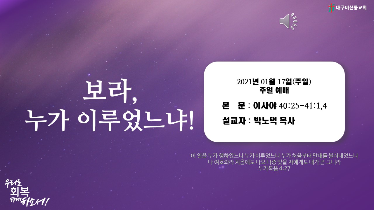 2021년 01월 24일 주일예배 말씀 영상