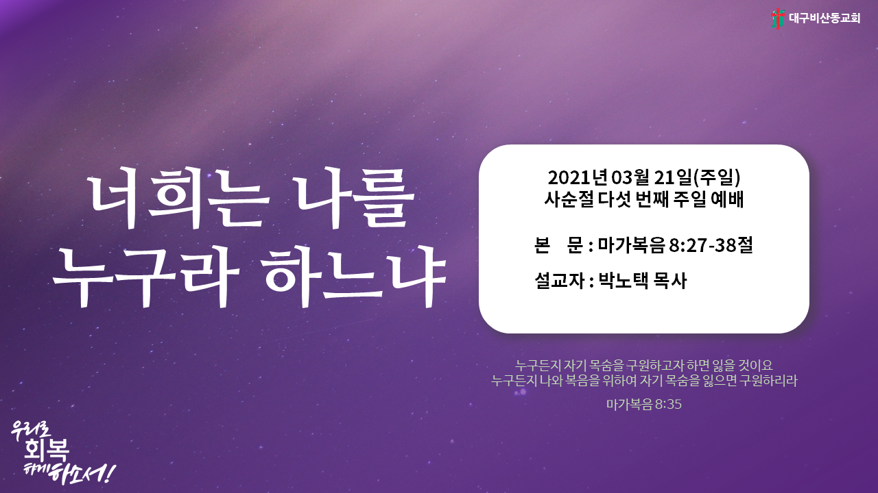 2021년 03월 21일 사순절 다섯 번째 주일 말씀영상