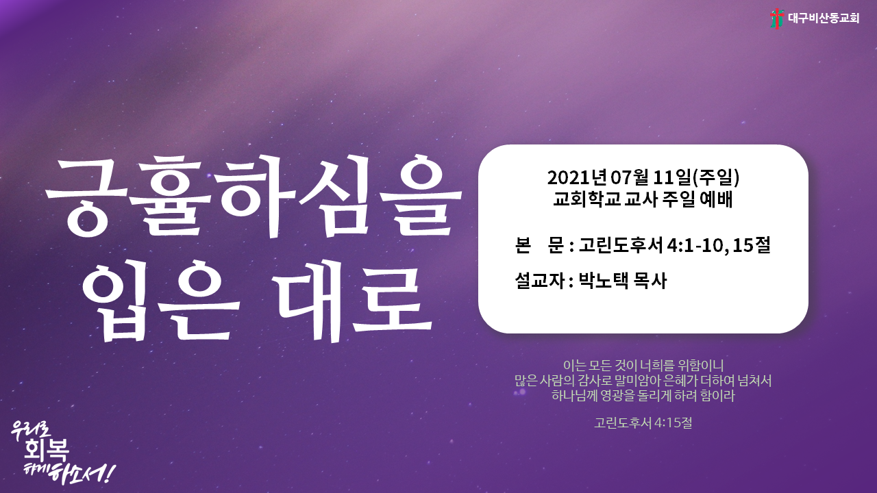 2021년 07월 25일 주일예배 말씀영상
