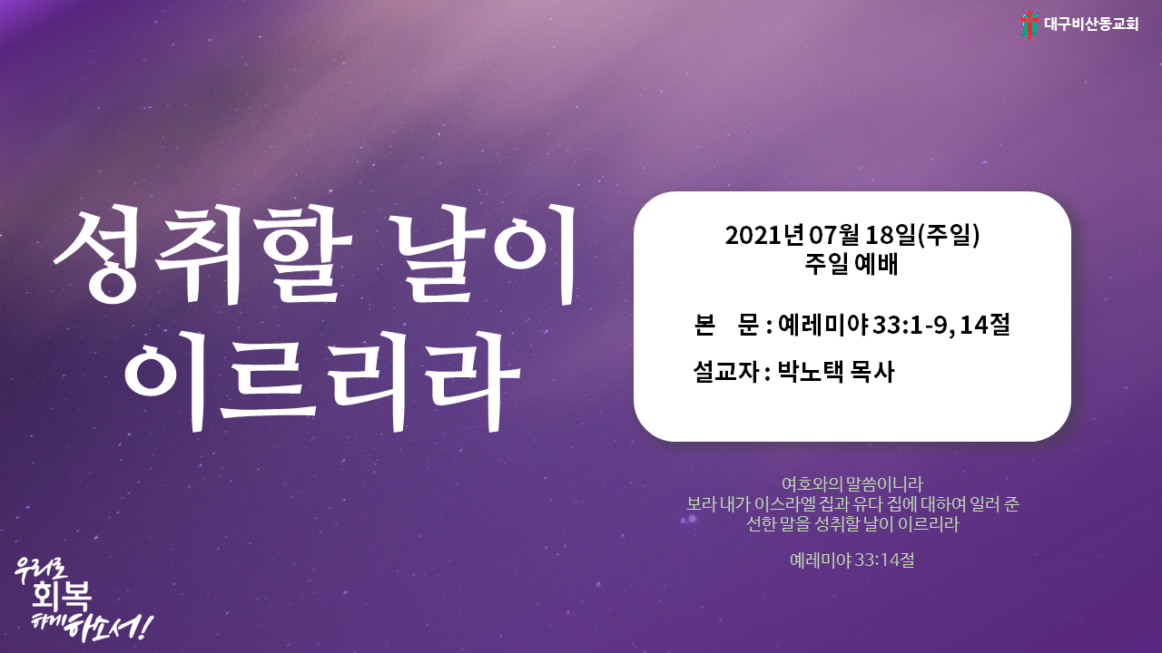 2021년 08월 01일 주일예배 말씀영상 (이단경계주일)
