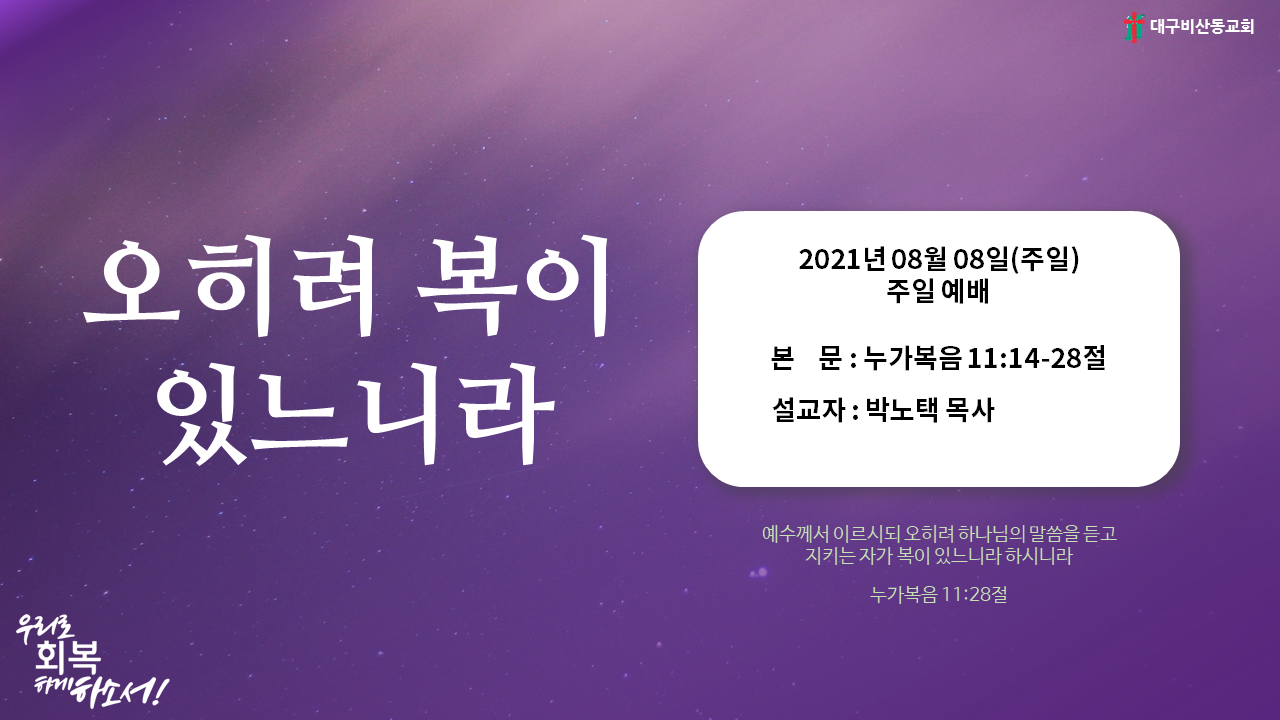 2021년 08월 01일 주일예배 말씀영상 (이단경계주일)