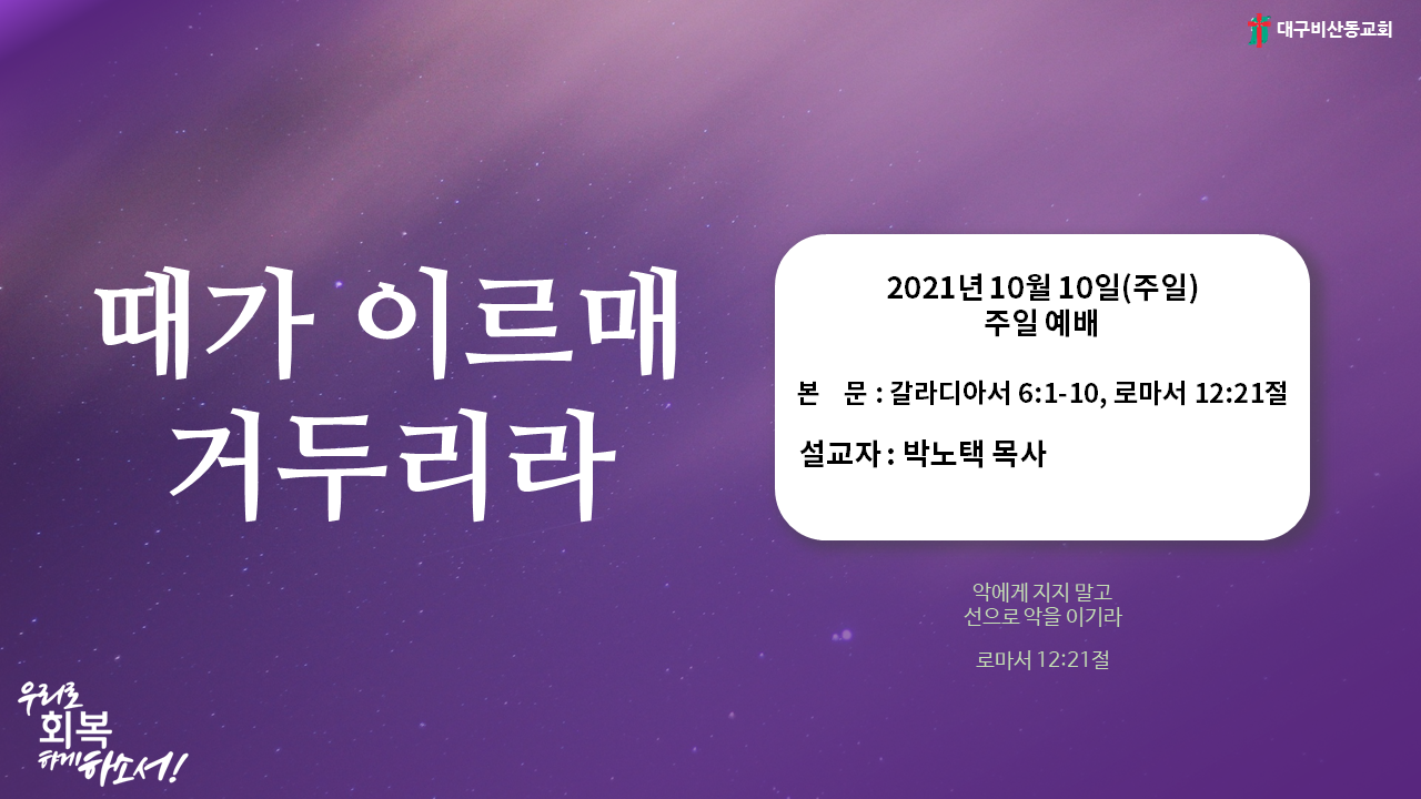 2021년 09월 05일 주일예배 말씀영상 (총회주일)