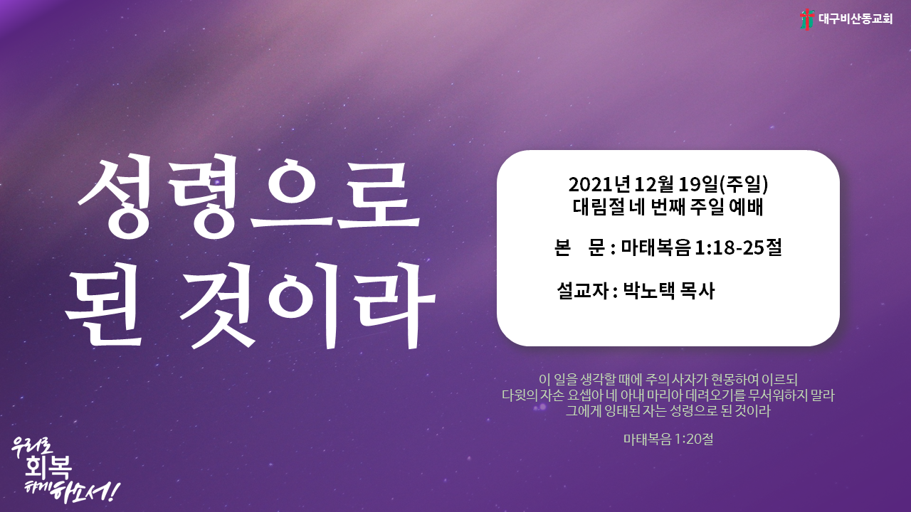 2021년 12월 19일 주일예배 말씀영상 (대림절 네 번째 주일)