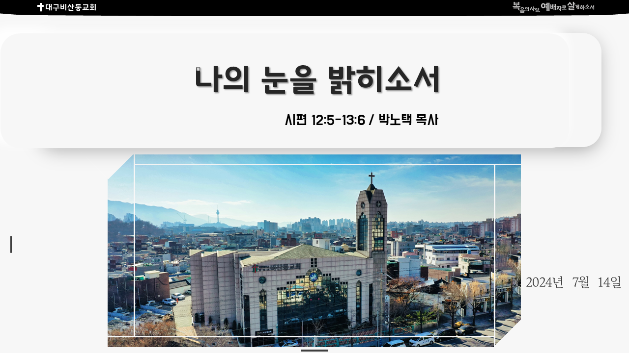 대구비산동교회 주일예배 말씀영상(2024.7.14) - YouTube