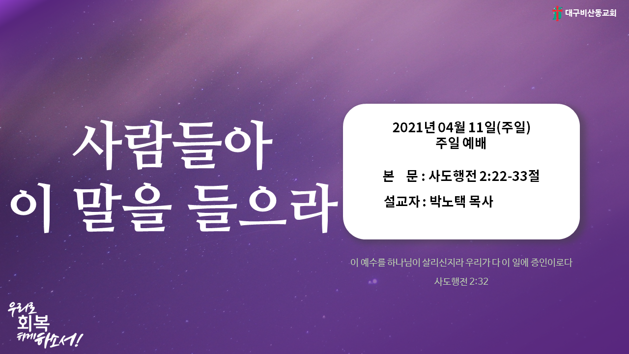 2021년 05월 23일 성령강림 주일예배 말씀영상